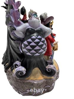 Disney Villains Showcase Collection, Carved by Heart Jim Shore, 6010880. This carved by Heart piece by Jim Shore spotlights Disney's greatest villains in compelling style. Up to no good, Ursula, Jafar, and Maleficent gather for a sculpted group portrait alongside Cruella, Captain Hook, and the Evil Queen. This sinister ensemble invites snickers and sneers in equal measure.'Mischief, Malice and Mayhem'' by Jim Shore.